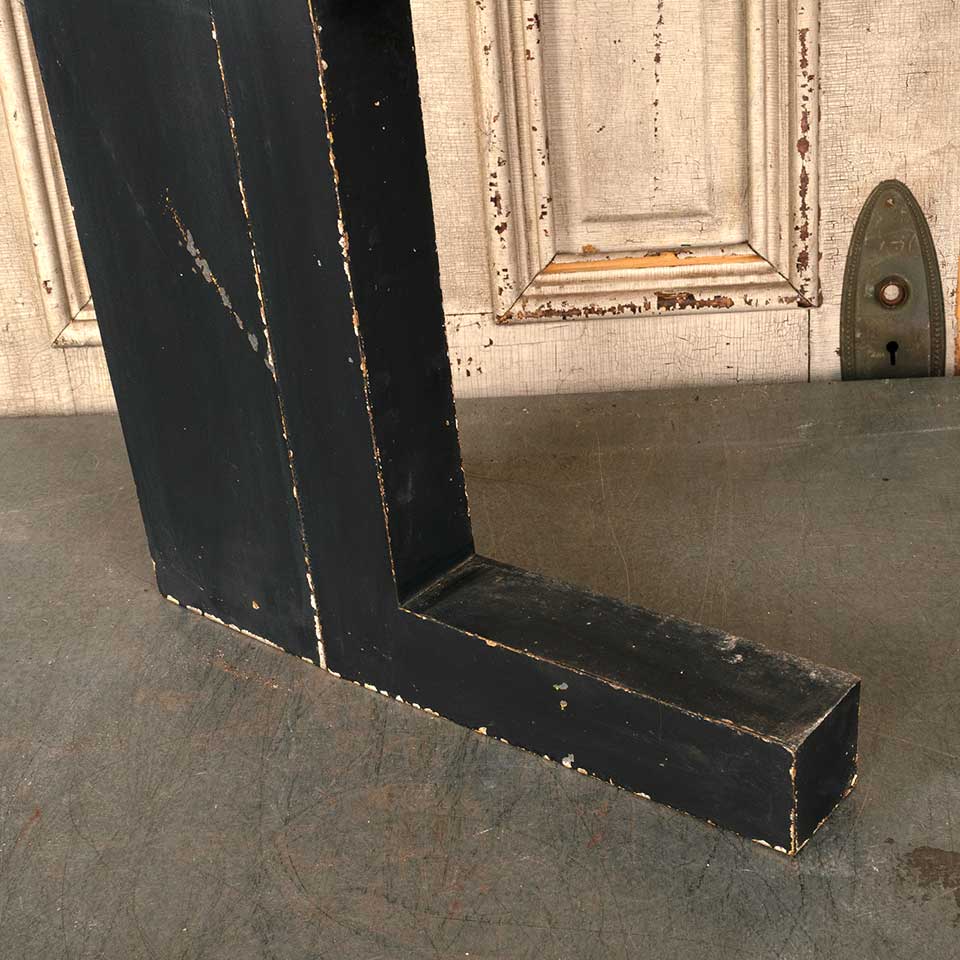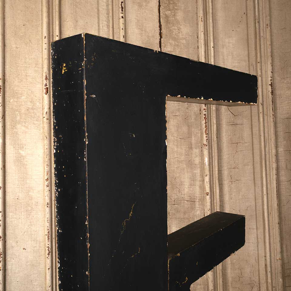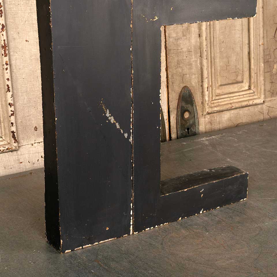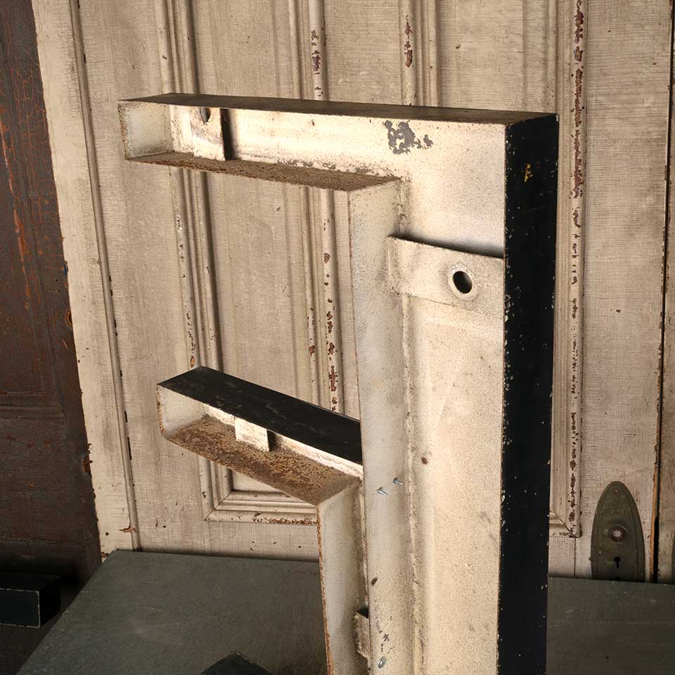 Architectural salvage vintage large two piece metal Art Deco building sign letter "E" measuring approx. 19 1/8" wide x 30 1/8" tall x 2 5/8" front to back. See photos to evaluate condition.