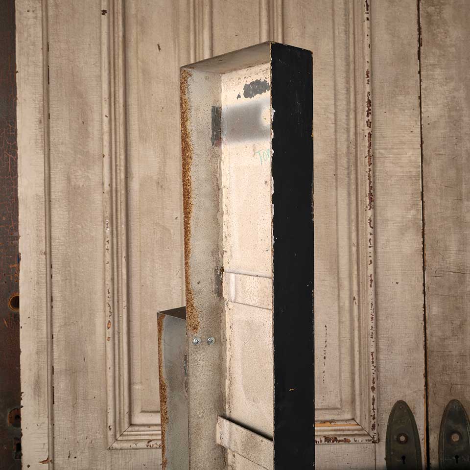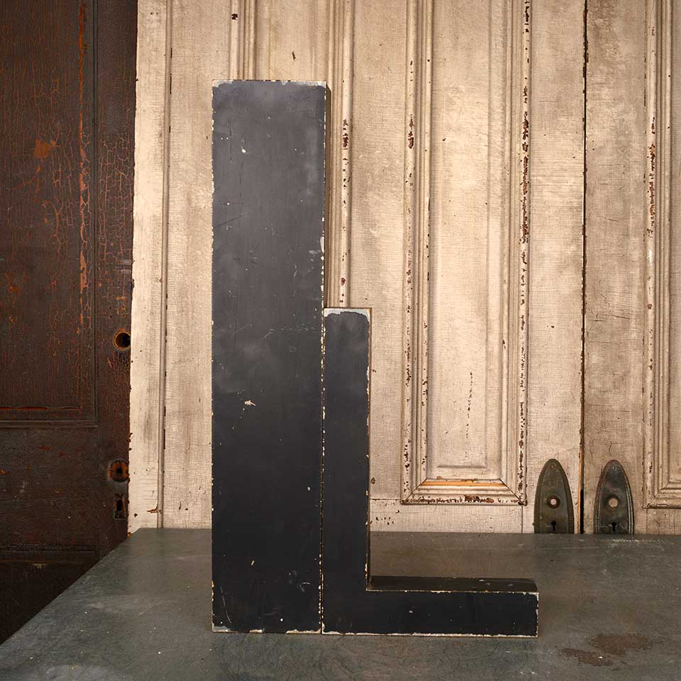 Architectural salvage vintage large two piece metal Art Deco building sign letter "L" measuring approx. 18" wide x 30" tall x 2 5/8" front to back. See photos to evaluate condition.