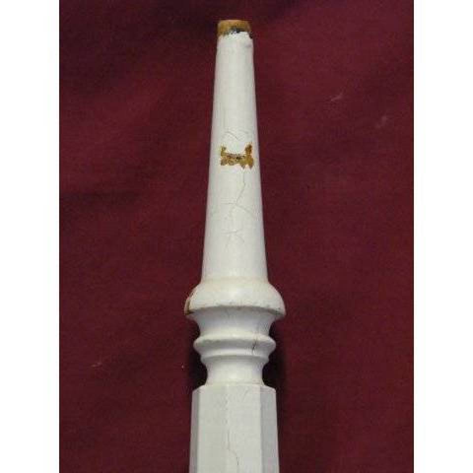 Vintage/antique architectural salvage painted wood staircase baluster measuring approximately 2 5/8" in diameter x 27 13/16" tall. Priced $15/each.