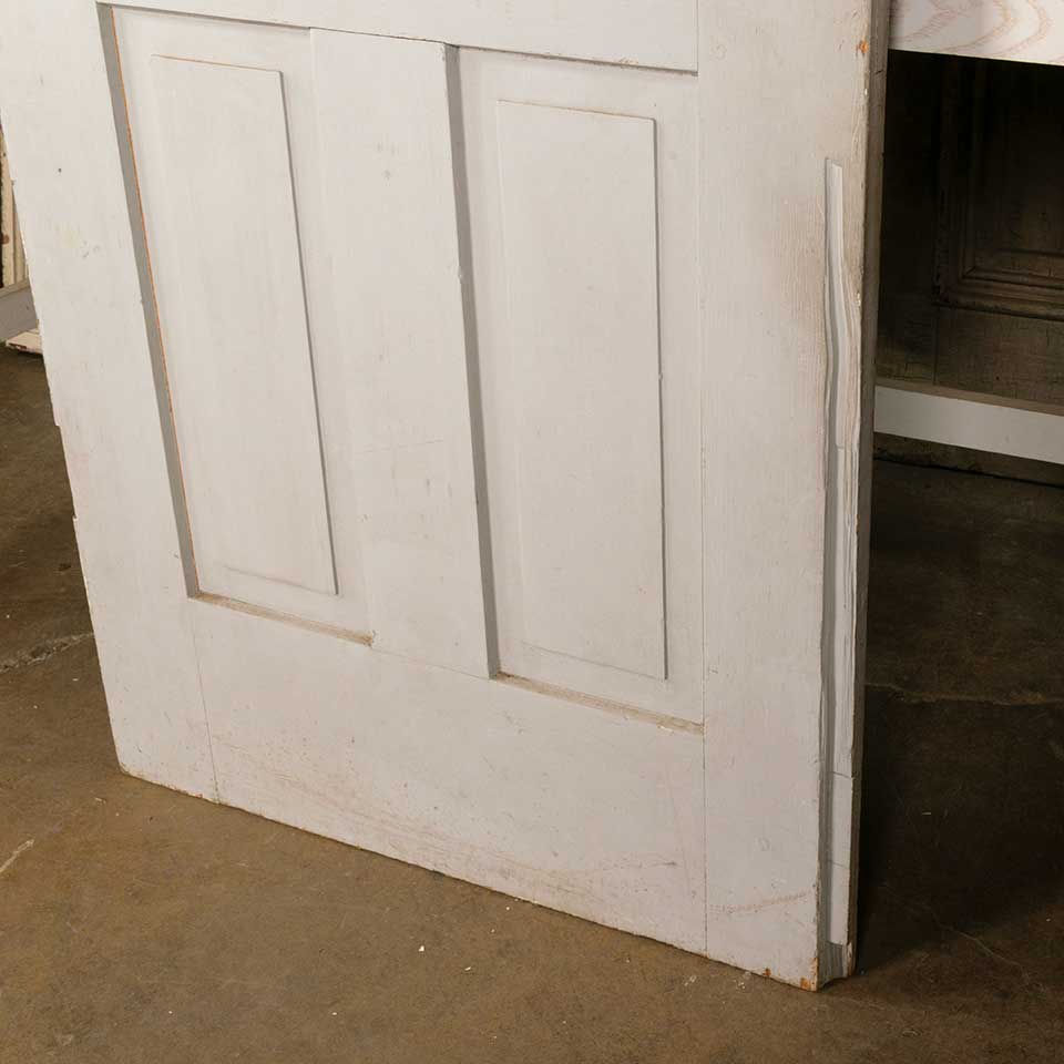 Architectural salvage antique four panel grain painted interior wood door measuring approx. 30" wide x 78 1/2" tall x 1 3/8" thick. There's a piece wood missing from one side of the door. See photos to evaluate condition.