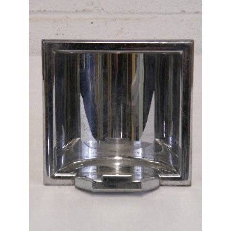 Vintage/antique architectural salvage metal bathroom soap holder wall insert measuring approximately 6 1/16" wide x 6 1/16" tall x 3 1/16" front to back.