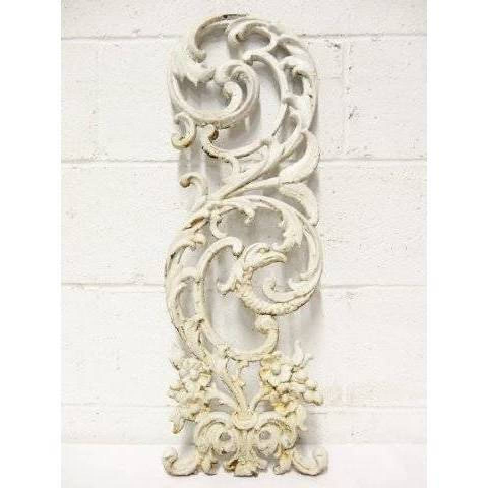 Vintage antique architectural salvage ornate cast iron ornament with bird and flower motif measuring approx. 9 3/8" wide x 27 3/8" tall x 7/8" thick. See photos to evaluate condition.
