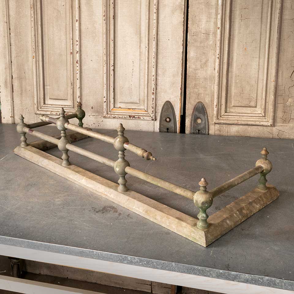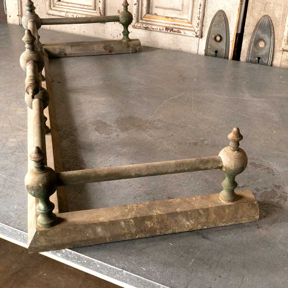 Architectural salvage antique brass fireplace fender measuring approx. 36" wide x 9 1/2" tall x 14 1/4" front to back. The condition of this item is consistent with age and use. See photos to evaluate.