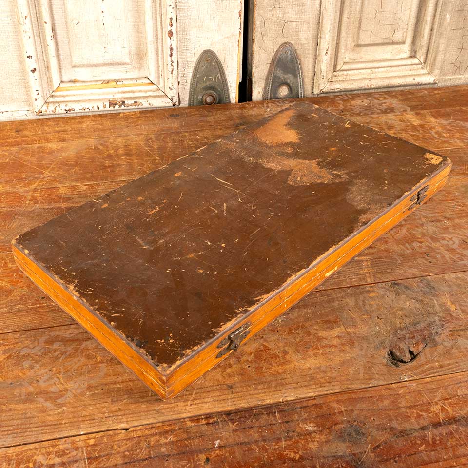 Antique Columbia Sign and Show Card Printer stamp set with approximately 74 pieces including numbers 0-9, letters A-Z, and extras. The wood case measures approx. 20 3/4" wide x 1 3/4" tall x 10 1/2" front to back and is marked C.H. Morse & Son, Rochester, N.Y. Priced at $189 for the set.