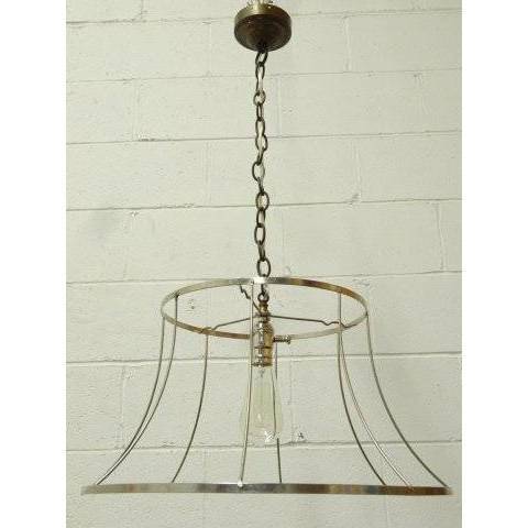 Repurposed metal light shade frame chandelier measuring approximately 20" in diameter x 10 1/4" tall (shade only). The chain length measures approximately 17" long and includes a 4 1/8" ceiling canopy. This fixture is wired, working and ready for installation.