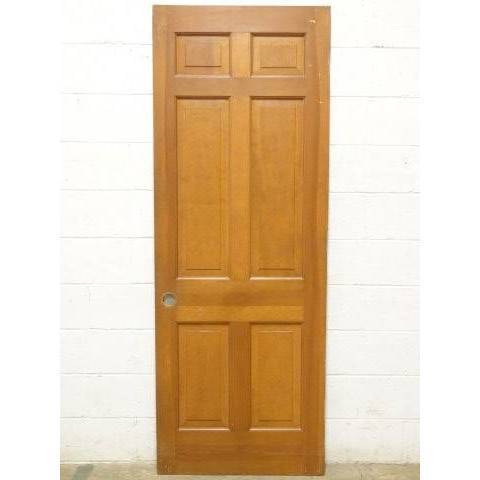Architectural salvage six panel interior wood door measuring approximately 29" wide x 78 3/4" tall x 1 3/8" thick.