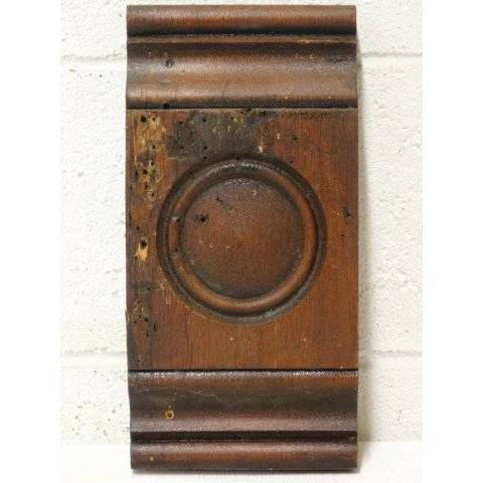 Vintage antique architectural salvage interior wood rosette trim block measuring approximately 5 3/4" wide x 11 1/2" tall x 1 3/4" thick. Priced at $20/each.