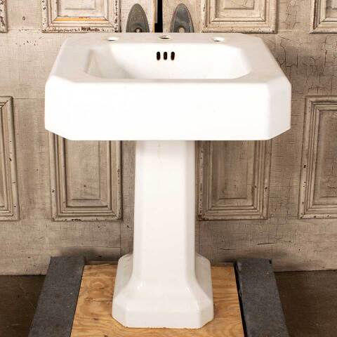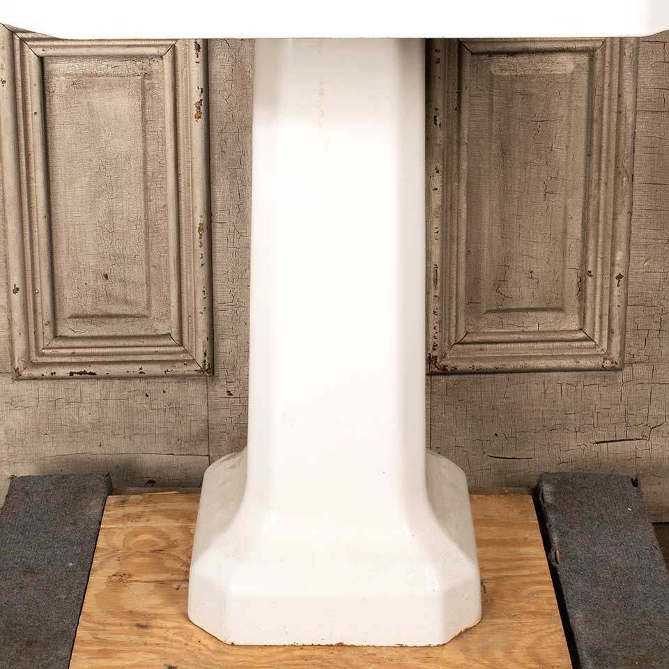 Architectural salvage antique cast iron porcelain enameled bathroom pedestal sink measuring approx. 23 1/2" wide x 31" tall x 19 1/2" front to back. See photos to evaluate condition.
