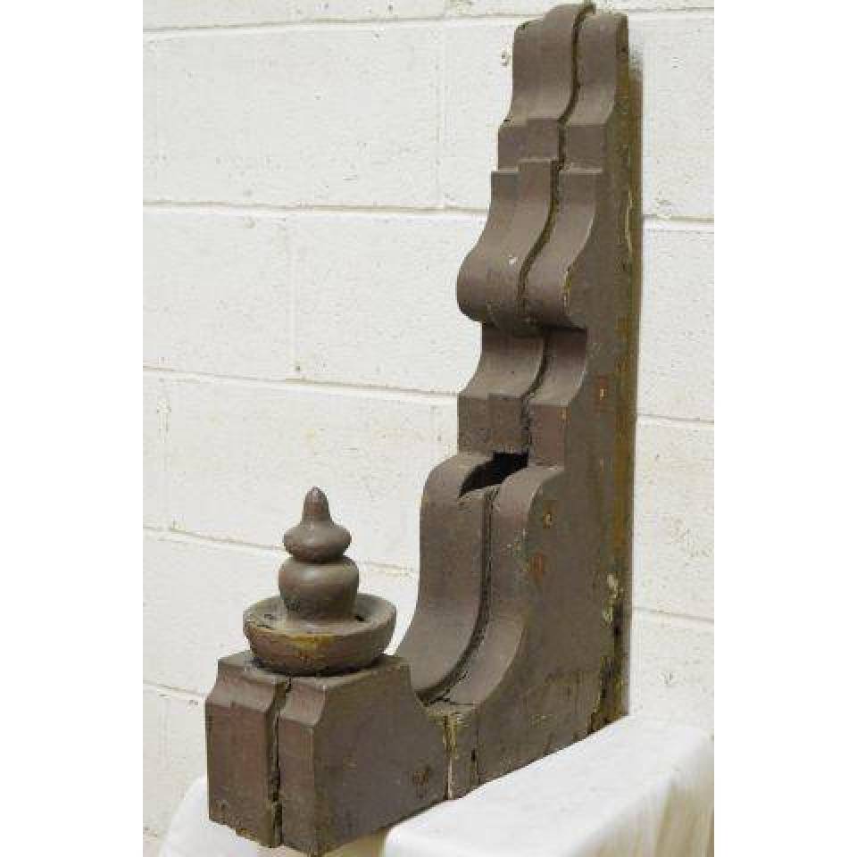 Large vintage/antique architectural salvage wood corbel bracket with turned drop finial measuring approximately 5 1/4" wide x 29" tall x 19" front to back.