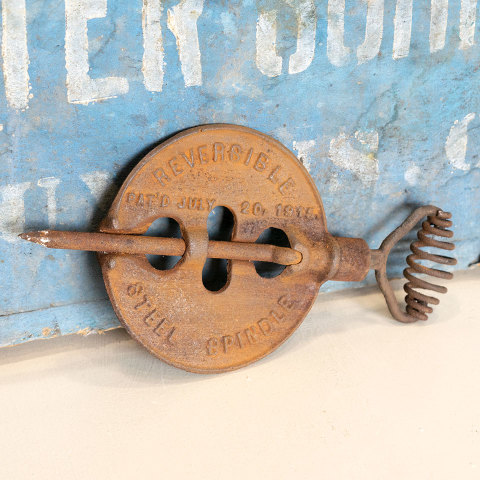 Vintage antique architectural salvage Griswold American 4" inch reversible steel spindle stove pipe flue damper measuring approximately 4" x 7 1/4" overall.