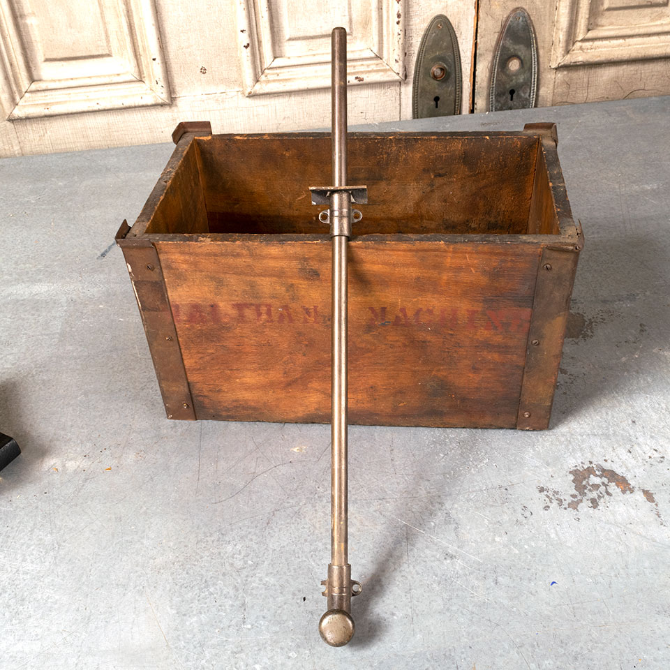 Antique architectural salvage 18 1/2" long brass French door or casement window surface mount slide bolt hardware with round knob, two mounting brackets, and strike plate. One mounting bracket has a broken screw hole - See photos.