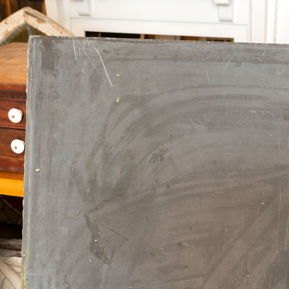 Vintage antique architectural salvage unframed school classroom wall chalkboard slate measuring approximately 58 3/8" x 42" x 3/8". See photos to evaluate condition.