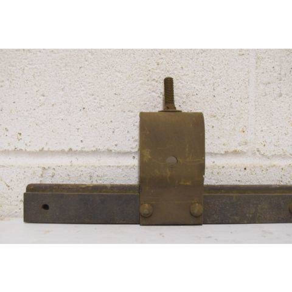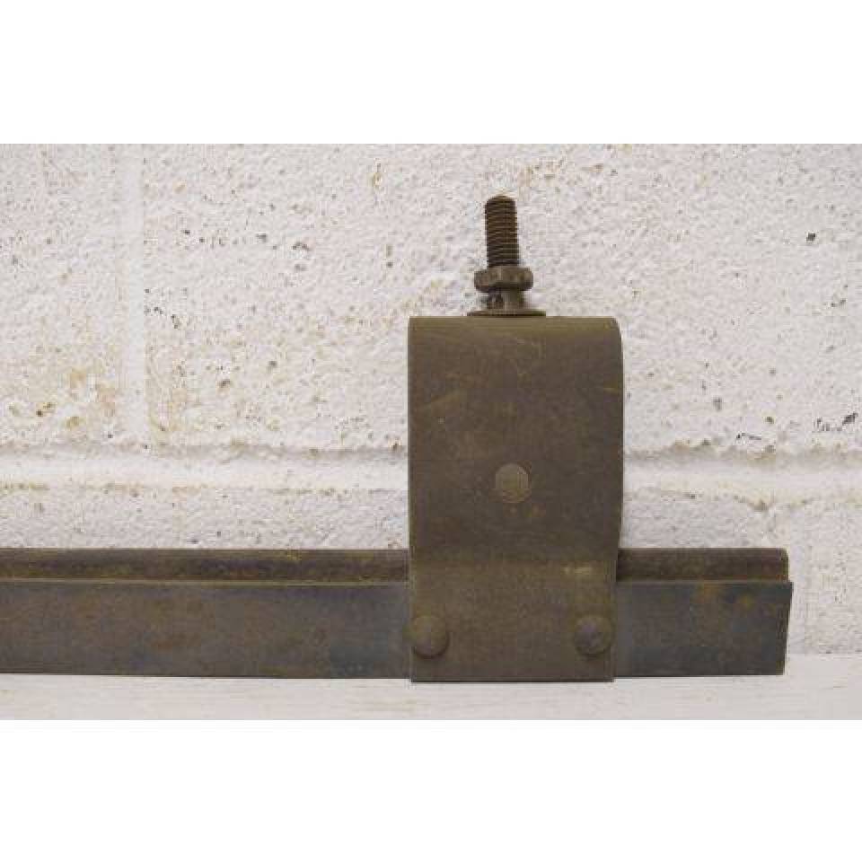 Vintage/antique architectural salvage metal pocket door track measuring approximately 32" long x 5 3/8" tall x 1 3/8" front to back.
