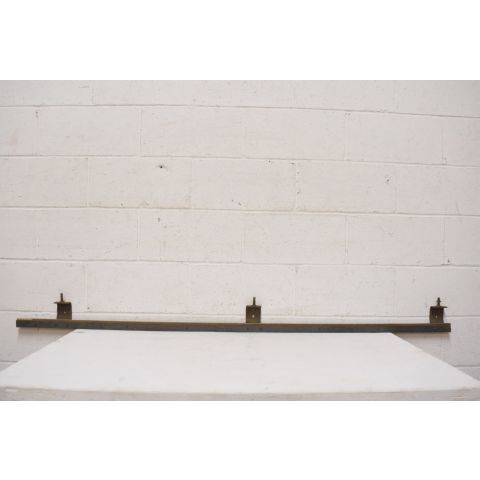 Vintage/antique architectural salvage metal pocket door track measuring approximately 66 3/4" long x 5 3/8" tall x 1 3/8" front to back.