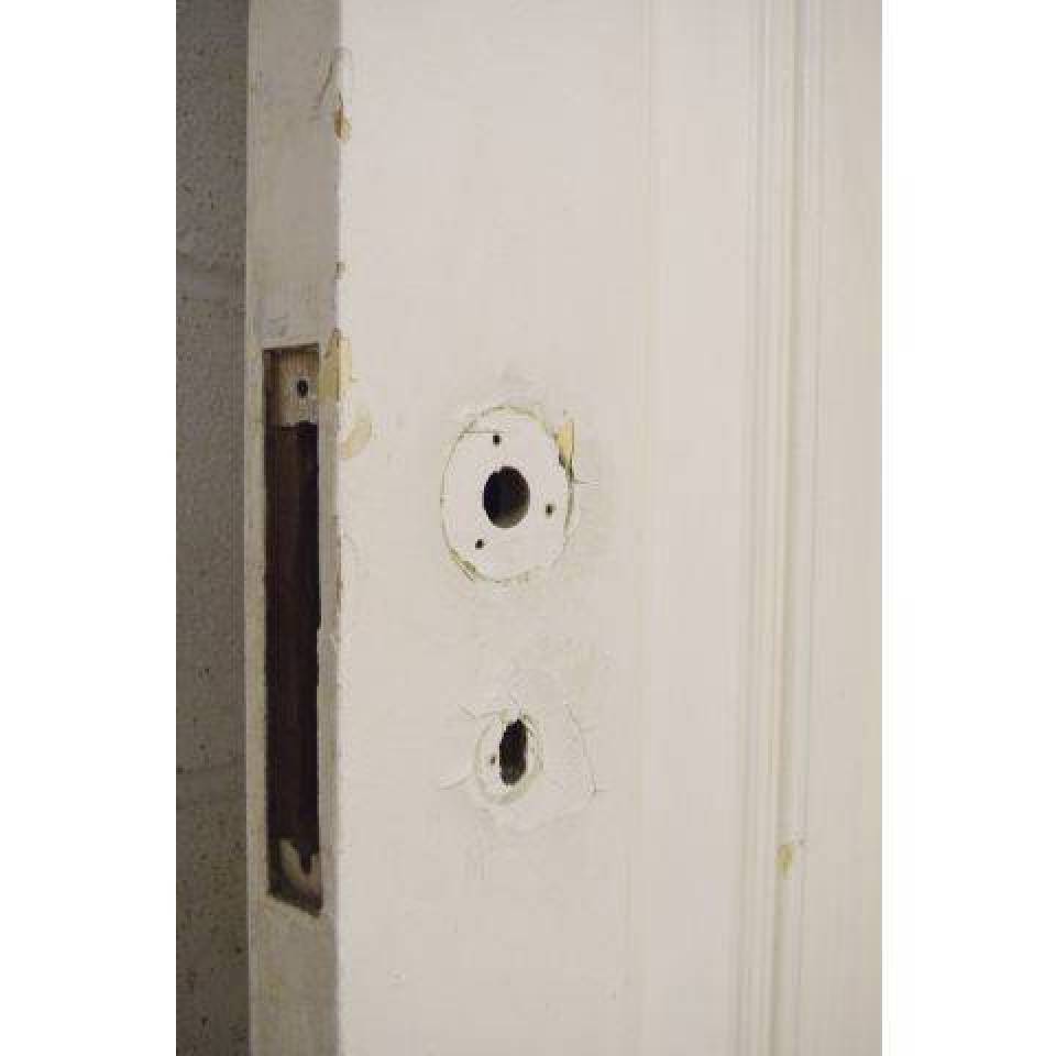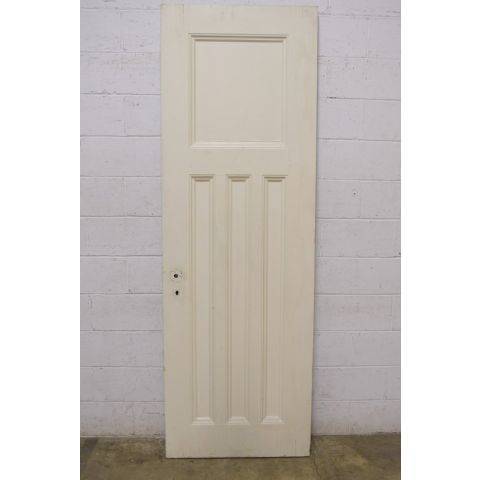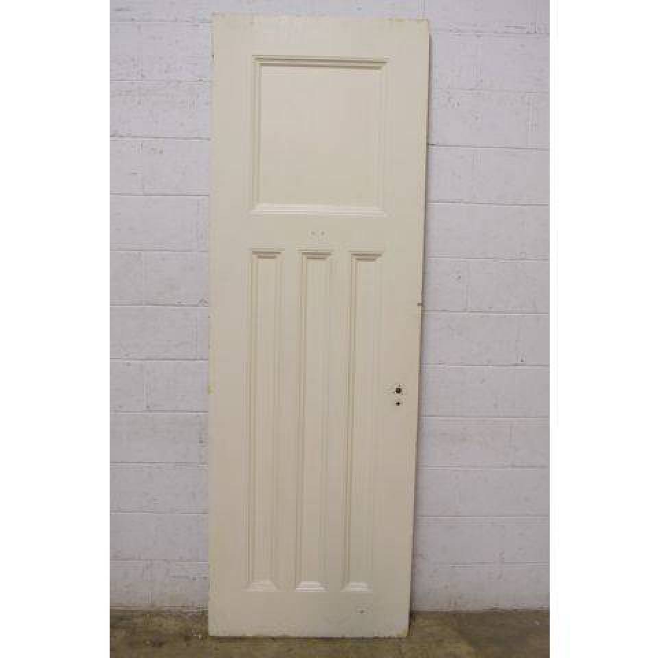 Unique vintage antique 4 panel painted wood interior door measuring approximately 29 3/4" wide x 89" tall x 1 3/4" thick.