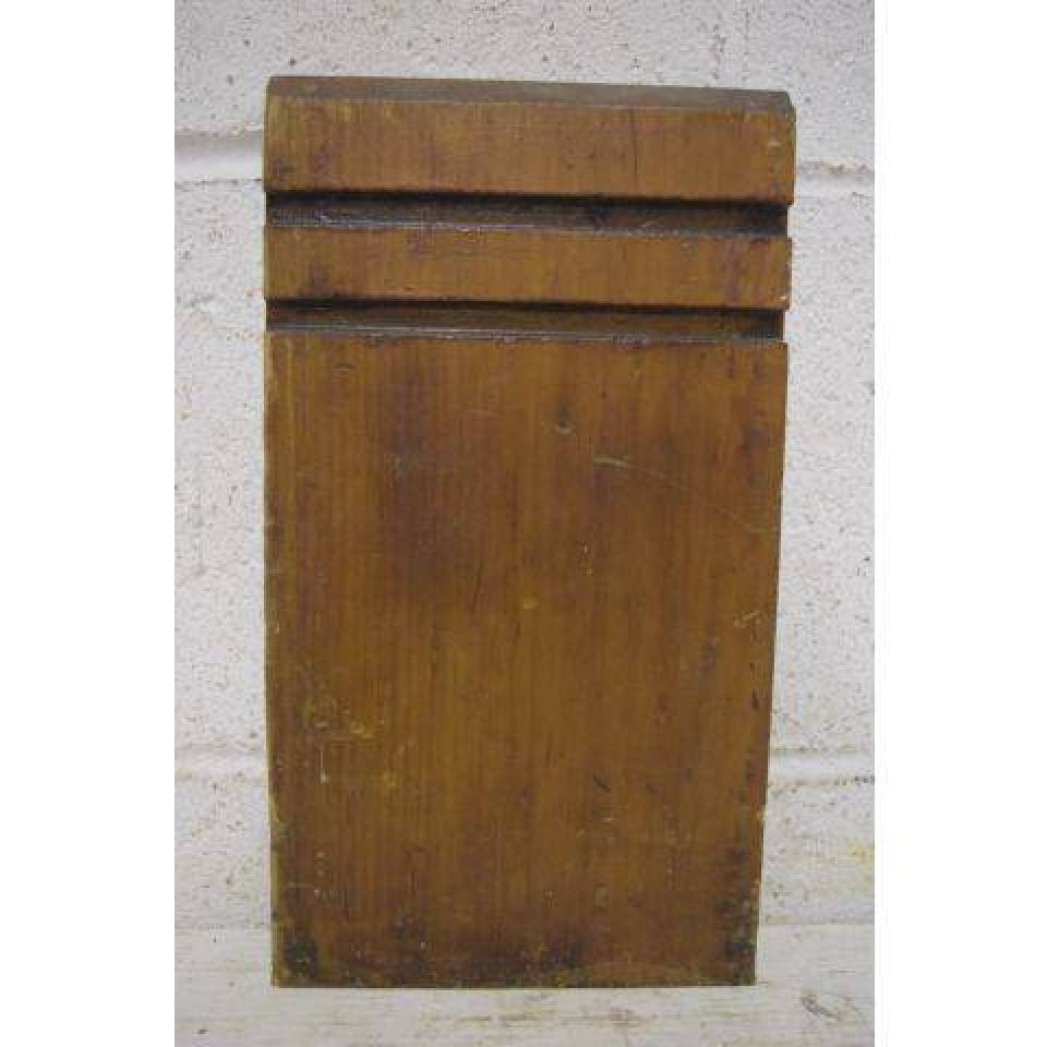 Vintage/antique architectural salvage wood plinth block measuring approximately 5 7/8" wide x 10 3/4-8 3/4" tall x 1 3/4" thick. Priced at $18/each.