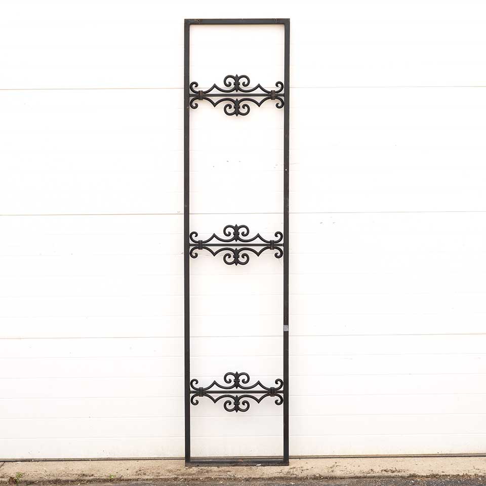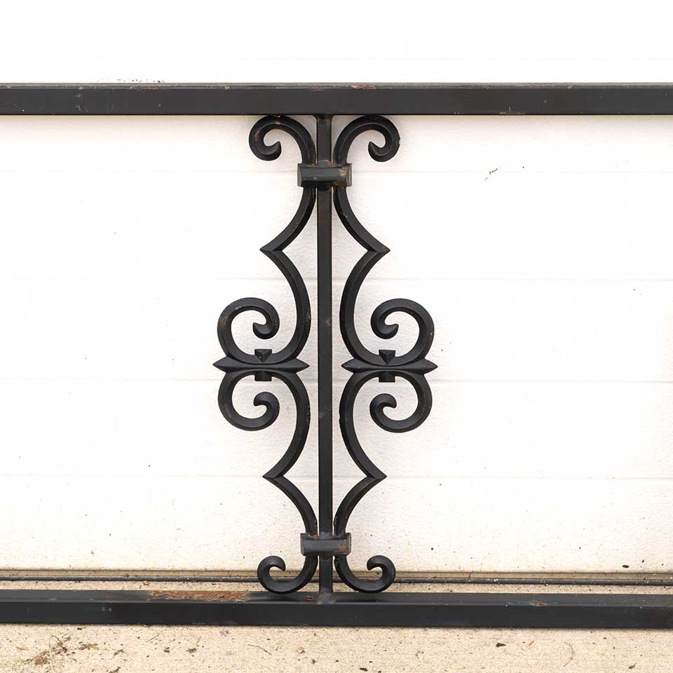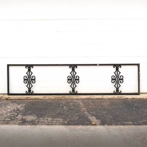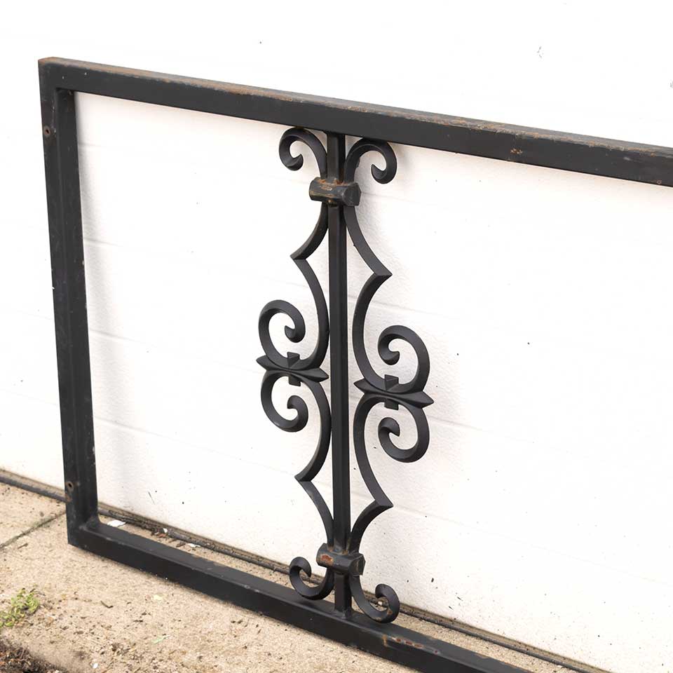 Architectural salvage ornate vintage metal railing section measuring approx. 85 3/8" wide x 20" tall x 1" front to back. See photos to evaluate condition.