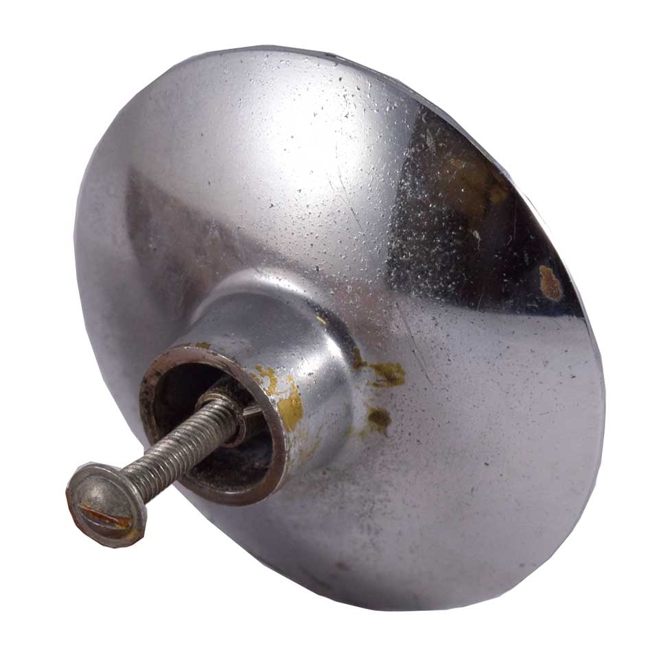 Vintage antique Mid Century Modern round chrome drawer pull hardware measuring approximately 2 3/8" in diameter. Priced at $8/each.