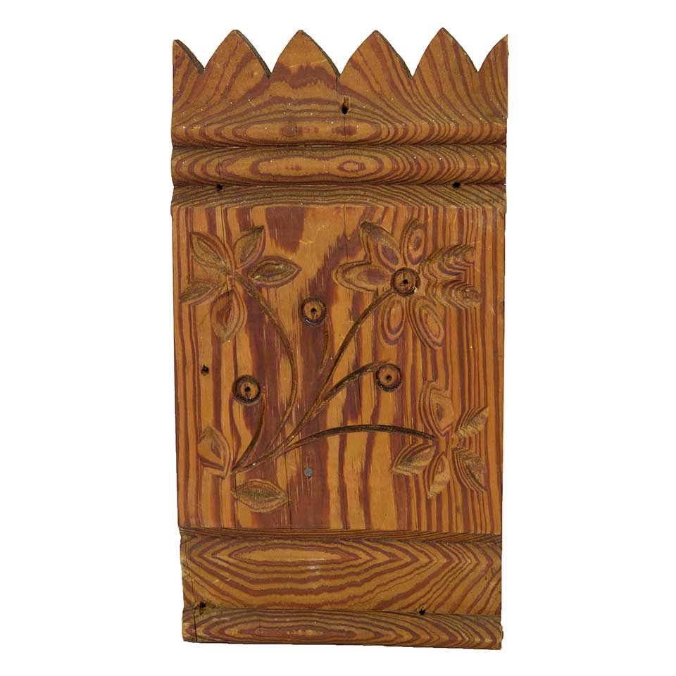 Vintage/antique architectural salvage carved pine wood interior right hand trim block with floral motif measuring approximately 5 1/2" wide x 10 1/2" tall x 1 1/8" thick. Priced at $25/each. Due to the nature of architectural salvage condition and color may vary.