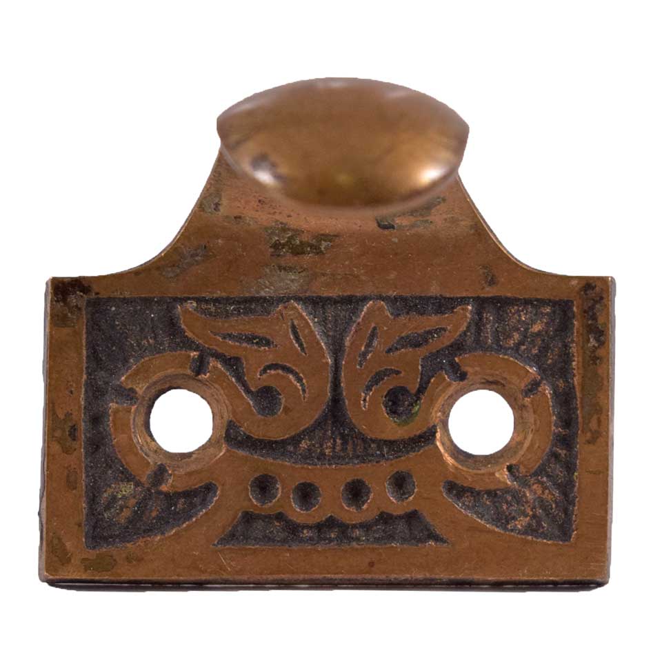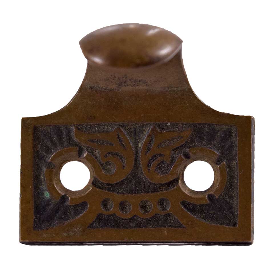 Vintage/antique architectural salvage ornate Victorian window sash lift measuring approximately 1 5/8" wide x 1" tall. Priced at $15/each. Due to the nature of architectural salvage condition and color may vary.