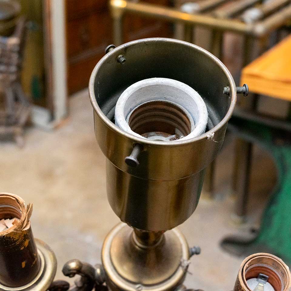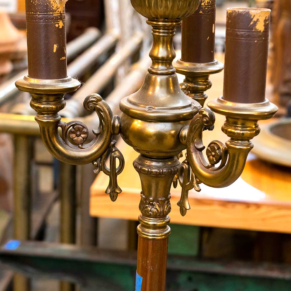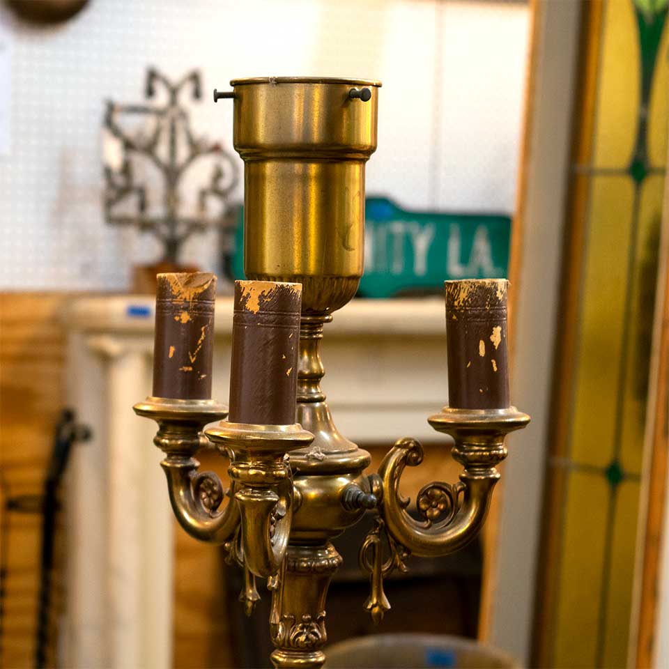 Vintage antique three light floor lamp measuring approximately 57 1/4" tall with an 11 3/4" diameter base. This fixture is being sold AS IS.