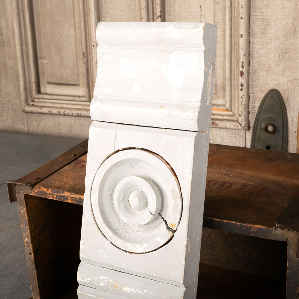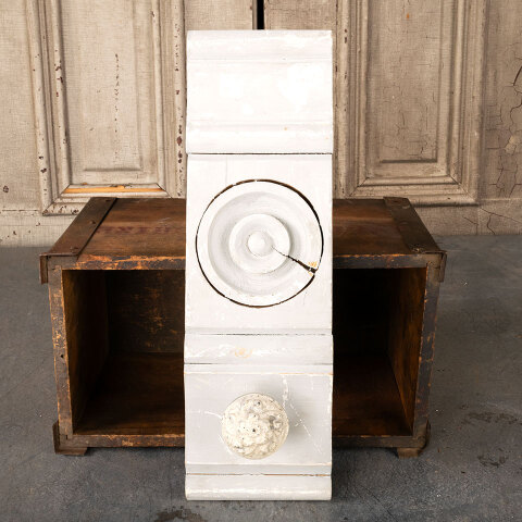 Contemporary wood rosette trim block and cast doorknob wall hanging measuring approx. 5" wide x 16 1/4" tall x 2 3/4" front to back. See photos to evaluate condition.