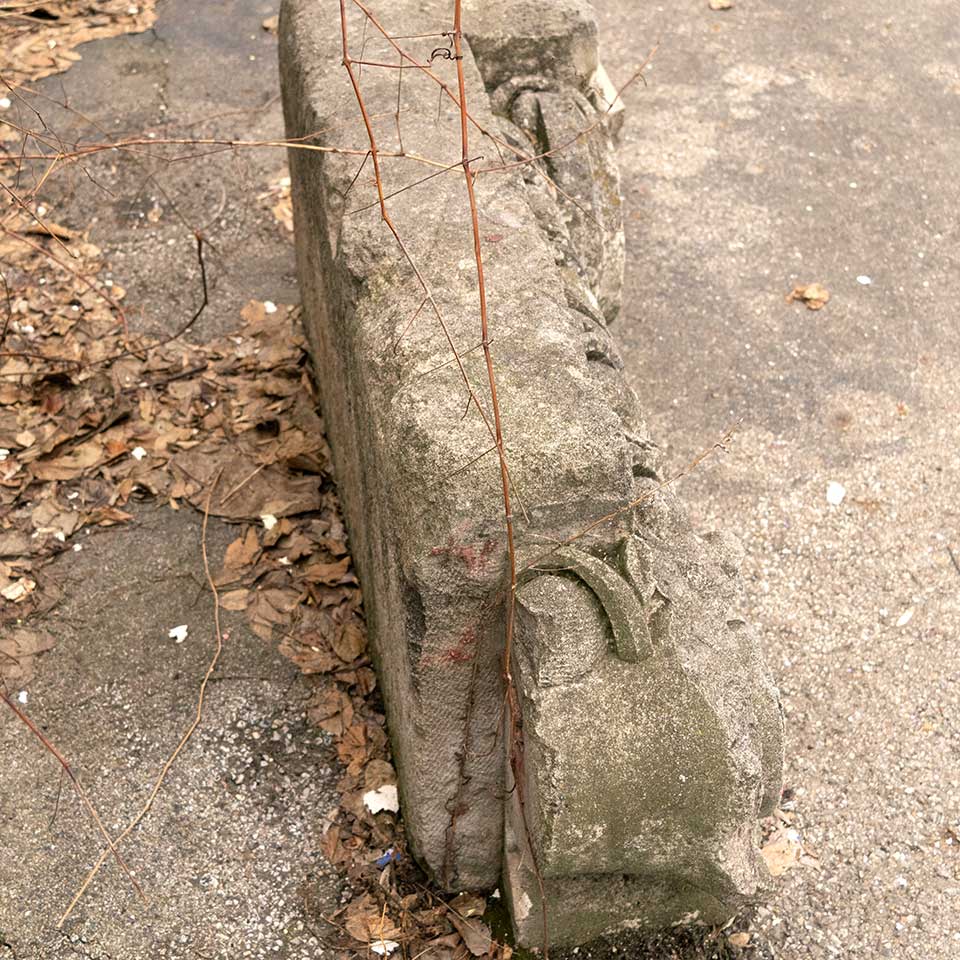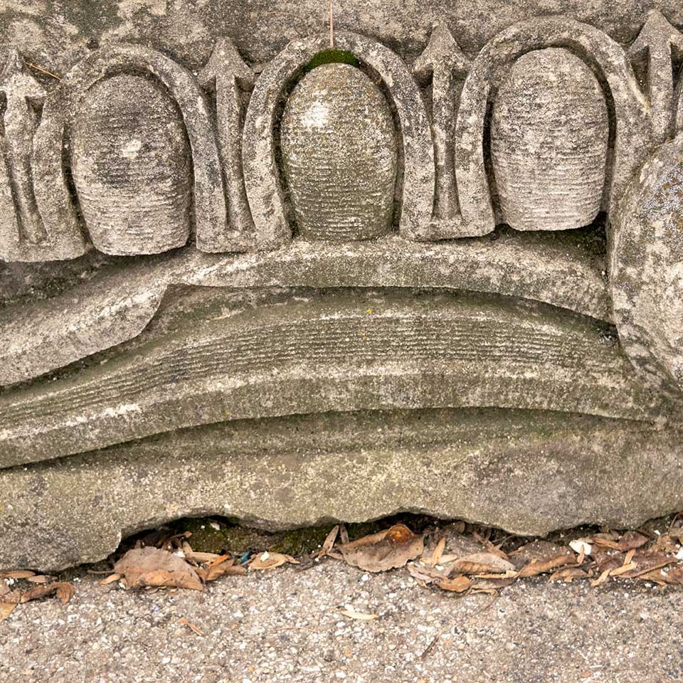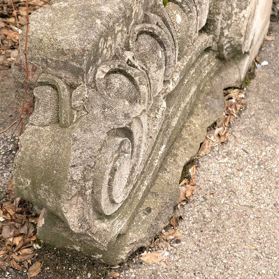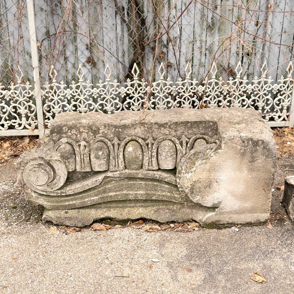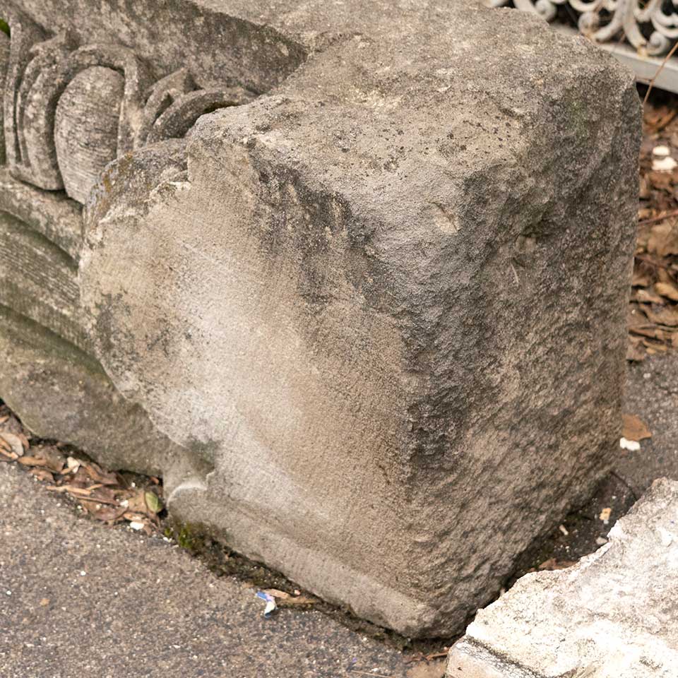 Architectural salvage large antique carved stone column capital building ornament with egg and dart detailing measuring approx. 51" wide x 20" tall x 15" front to back. This artifact was saved from Brown Hall at The Ohio State University when it was demolished in 2008. This piece would make a great garden ornament. See photos to evaluate condition.