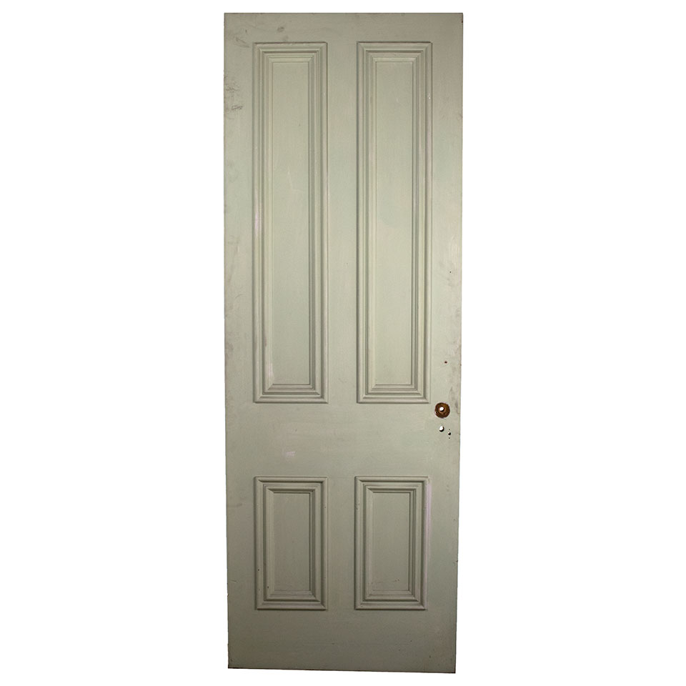 Vintage antique architectural salvage four panel interior wood door measuring approximately 31 7/8" wide x 90" tall x 1 3/8" thick.