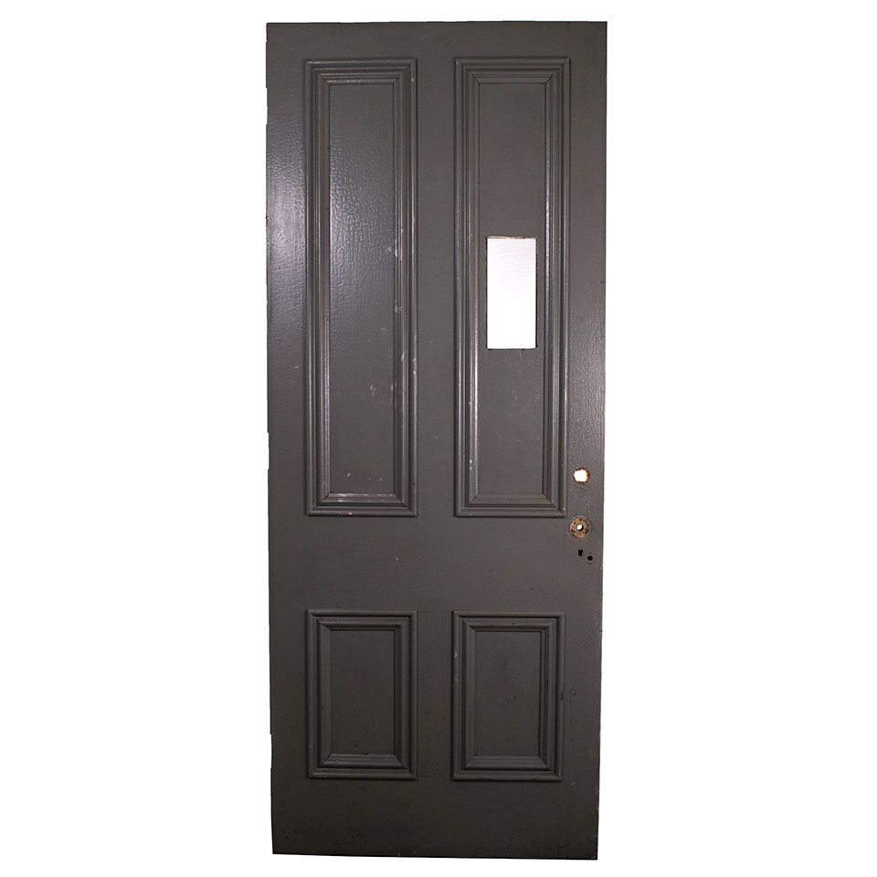 Vintage antique architectural salvage four panel interior wood door measuring approximately 35 3/4" wide x 89 1/4" tall x 1 3/8" thick. This door has some damage (See photos).