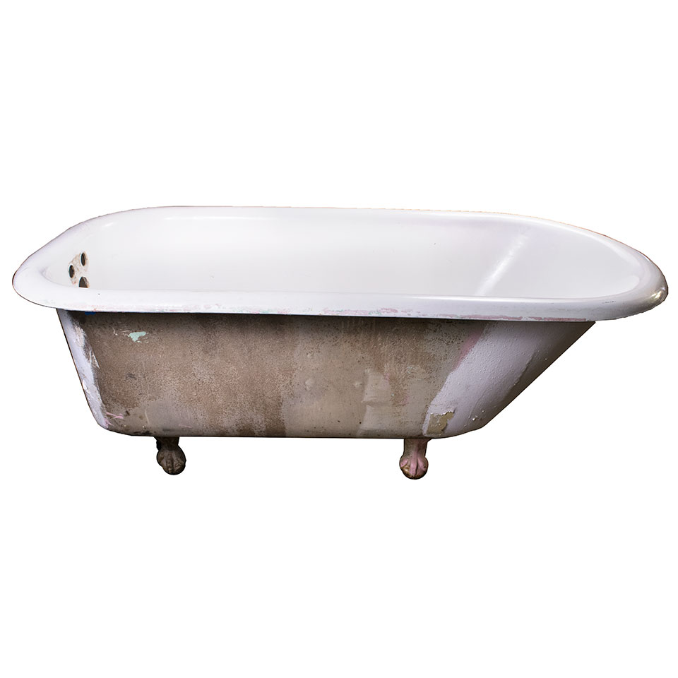 Architectural salvage antique porcelain enameled cast iron clawfoot bathtub measuring approx. 30 3/8" wide x 23 1/8" tall x 60 1/2" long. See photos to evaluate condition.