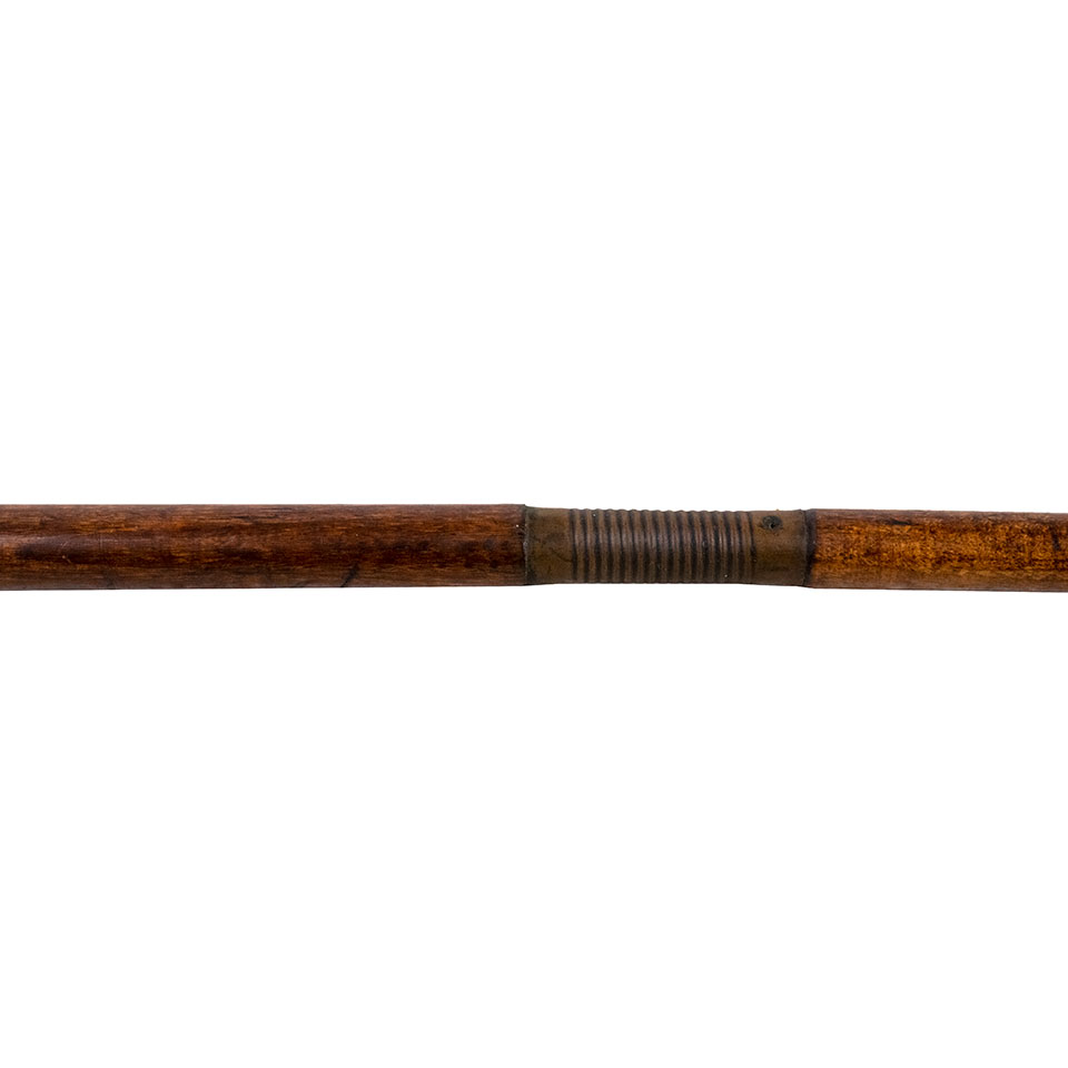 Vintage antique turned wood 3 piece rifle shotgun barrel cleaning rod with brass fittings measuring approximately 36 5/8" long with a 5/8" diameter handle.