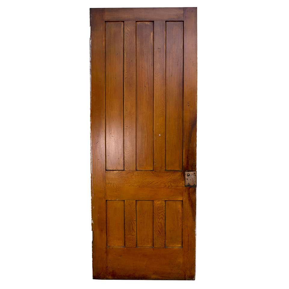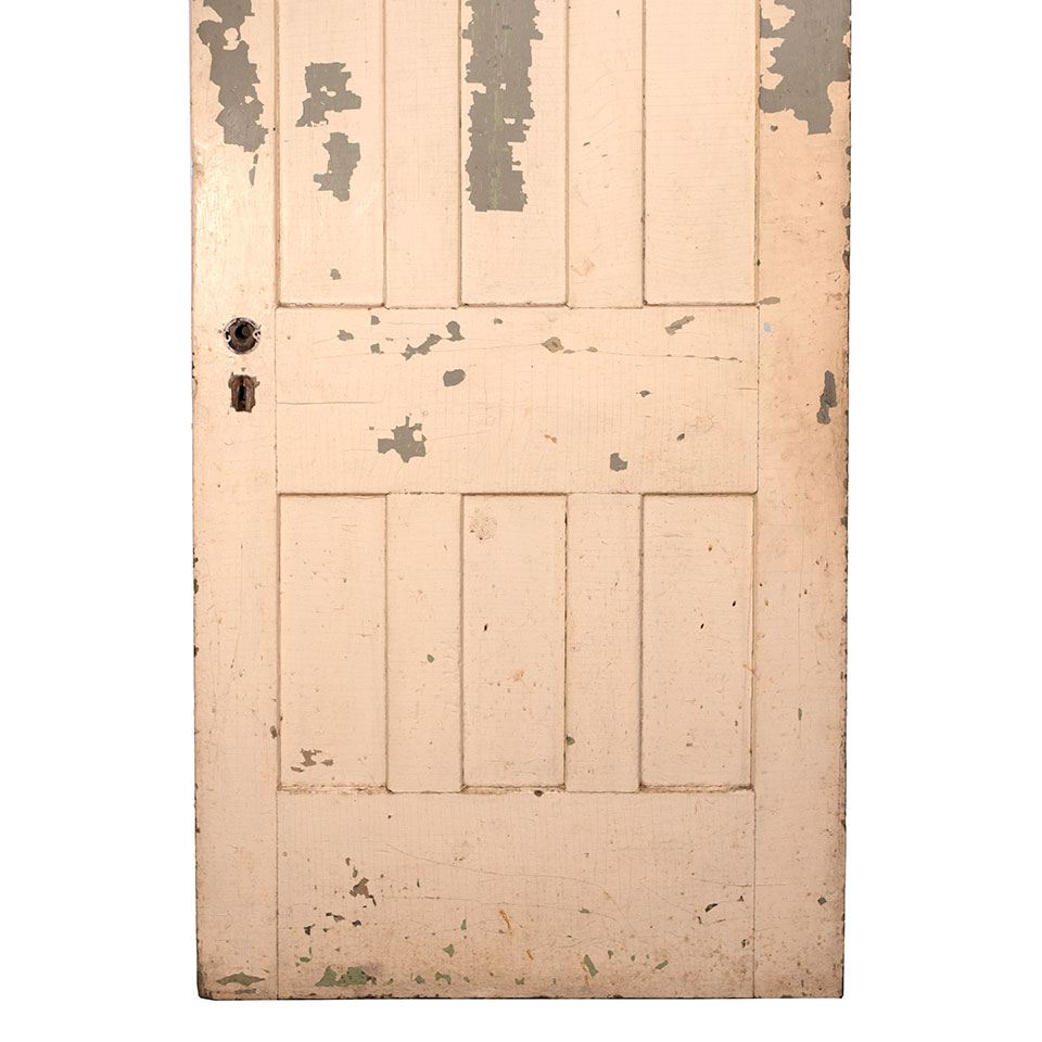 Vintage antique architectural salvage vertical six panel grain painted interior wood door measuring approximately 33 5/8" wide x 86 3/4" tall x 1 3/8" thick.