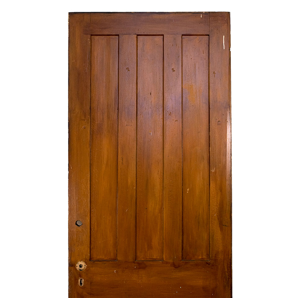 Vintage antique architectural salvage vertical six panel interior wood door measuring approximately 33 1/2" wide x 87 1/2" tall x 1 1/4" thick.
