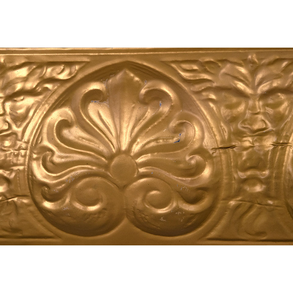 Architectural salvage antique pressed / stamped tin ceiling crown molding section measuring approx. 49" wide x 15 3/8" tall with a 2 1/4" projection. See photos to evaluate condition.