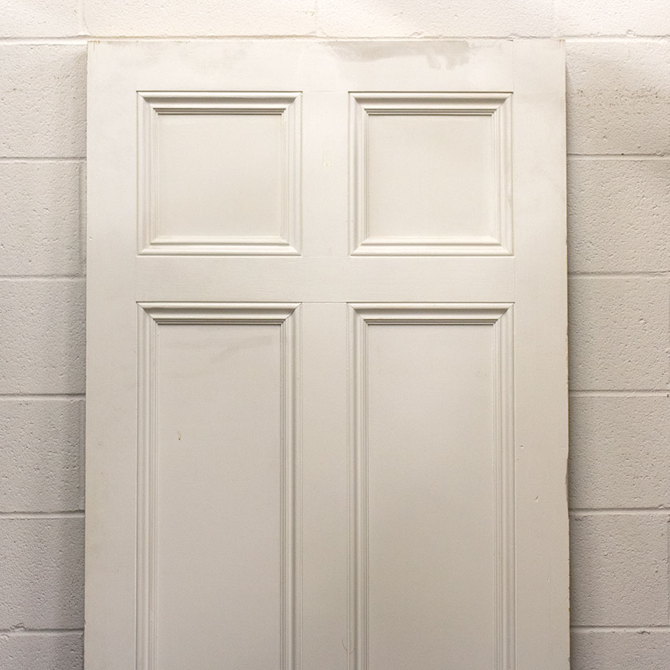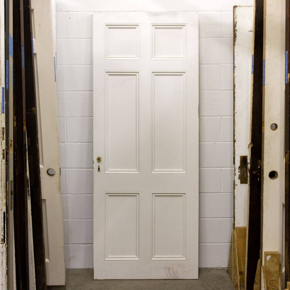 Vintage antique architectural salvage six panel interior pine wood door measuring approximately 31 3/4" wide x 80" tall x 1 5/8" thick.