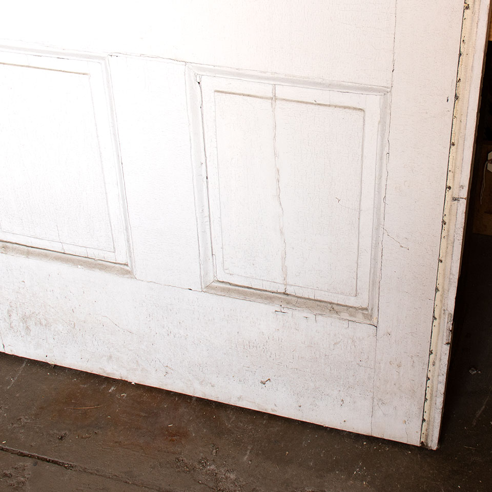 Vintage antique architectural salvage eight panel wood entry door measuring approximately 39 5/8" wide x 76 7/8" tall x 1 3/8" thick.