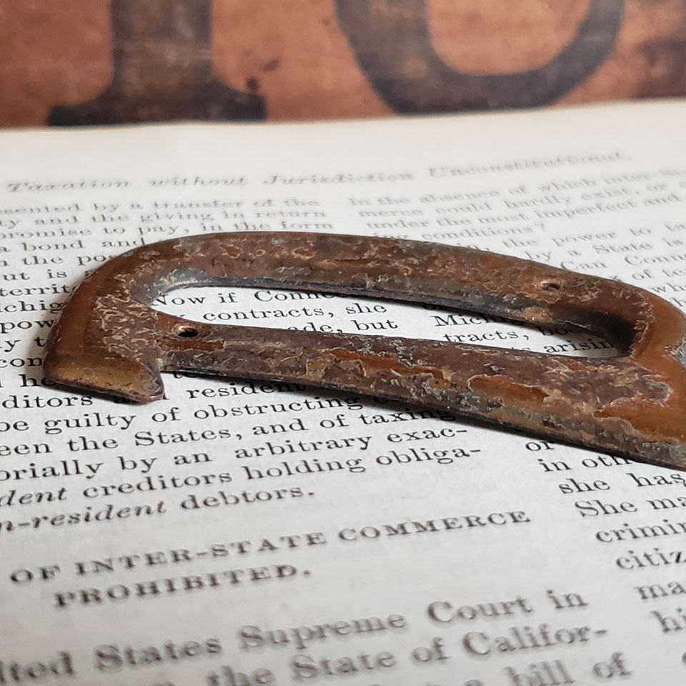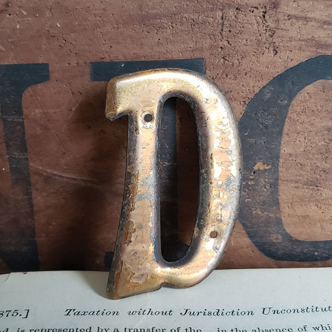 Vintage antique architectural salvage small metal letter D with copper finish measuring approximately 1 1/2" x 2 3/8".