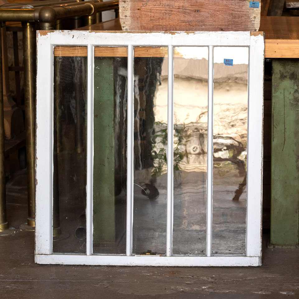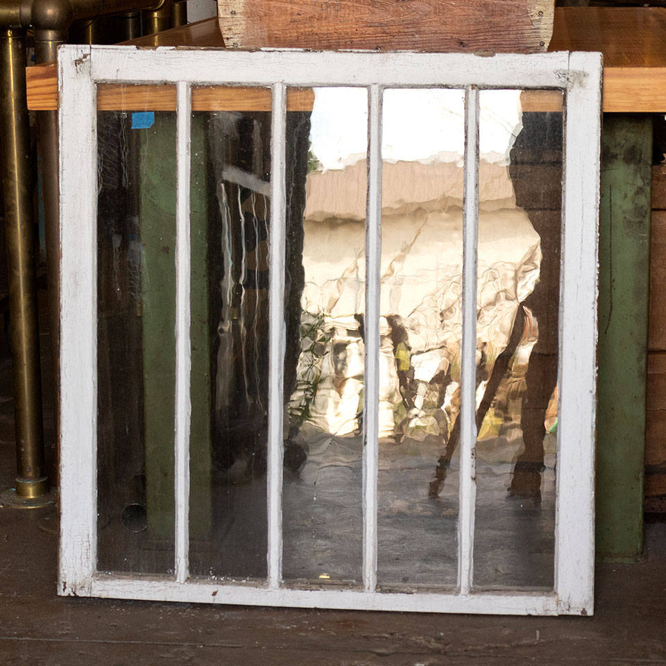 Vintage antique architectural salvage divided lite wood window sash measuring approximately 32 1/2" wide x 33 1/2" tall x 1 1/2" thick. Priced at $75/each. Due to the nature of architectural salvage - condition and color may vary.