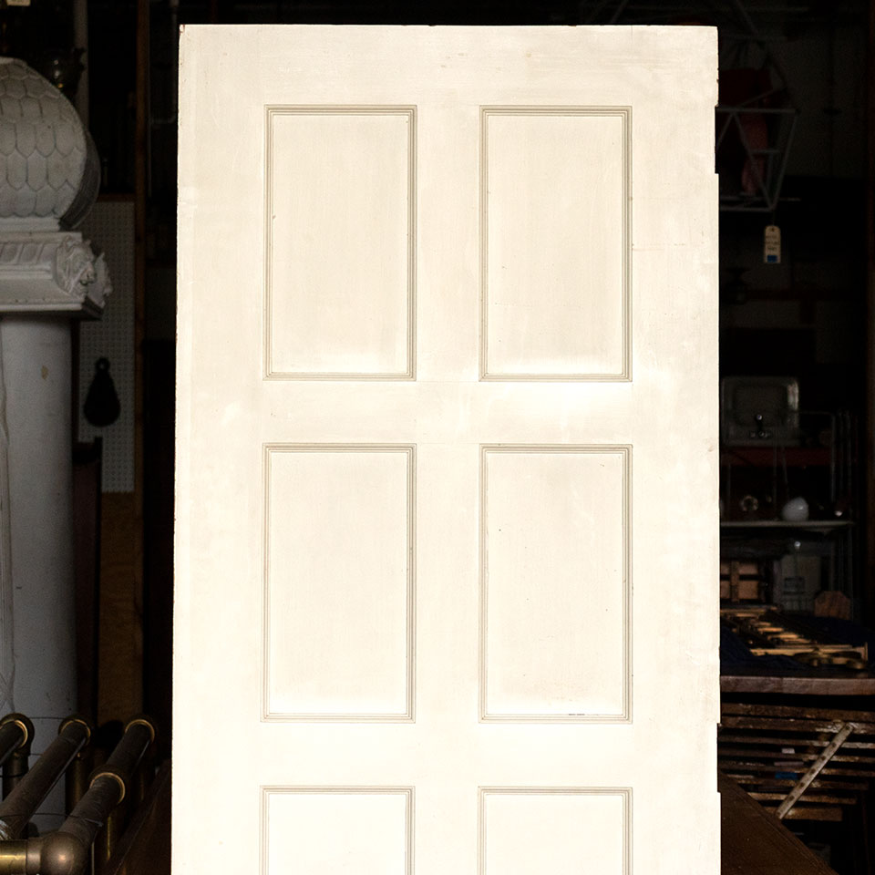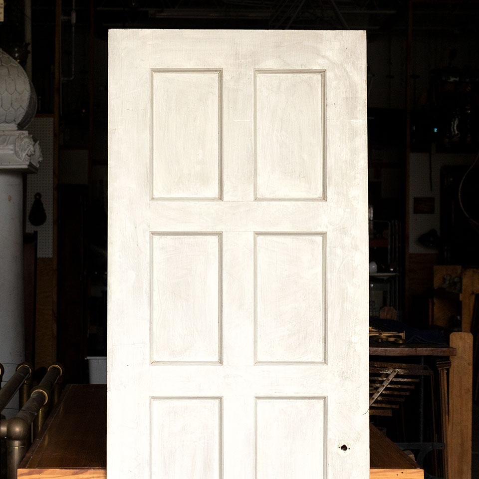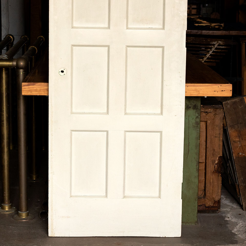 Vintage antique architectural salvage painted wood eight panel interior door measuring approximately 28" wide x 79" tall x 1 3/8" thick.