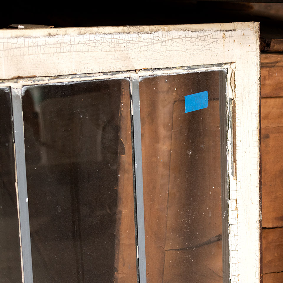 Vintage antique architectural salvage leaded glass window sash measuring approximately 32 1/4" wide x 27 1/2" tall x 1 3/4" thick. Due to the nature of architectural salvage - condition and color may vary. Priced at $45/each