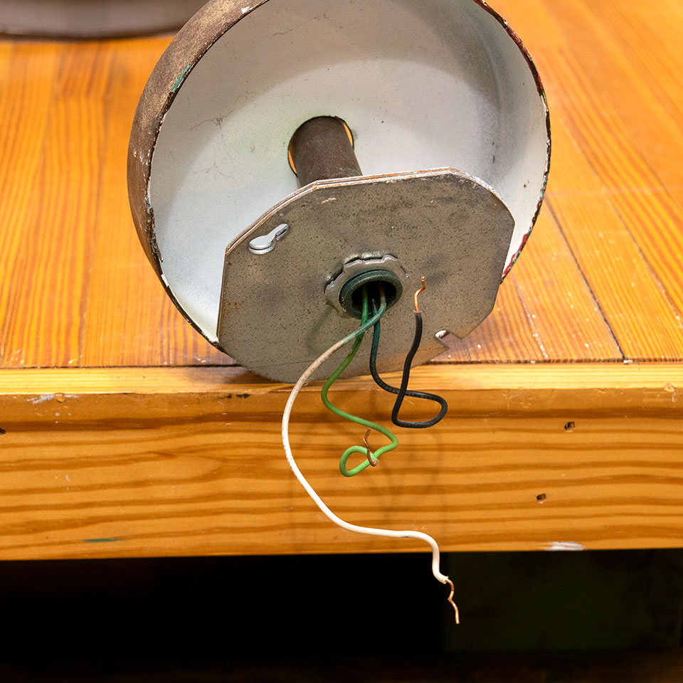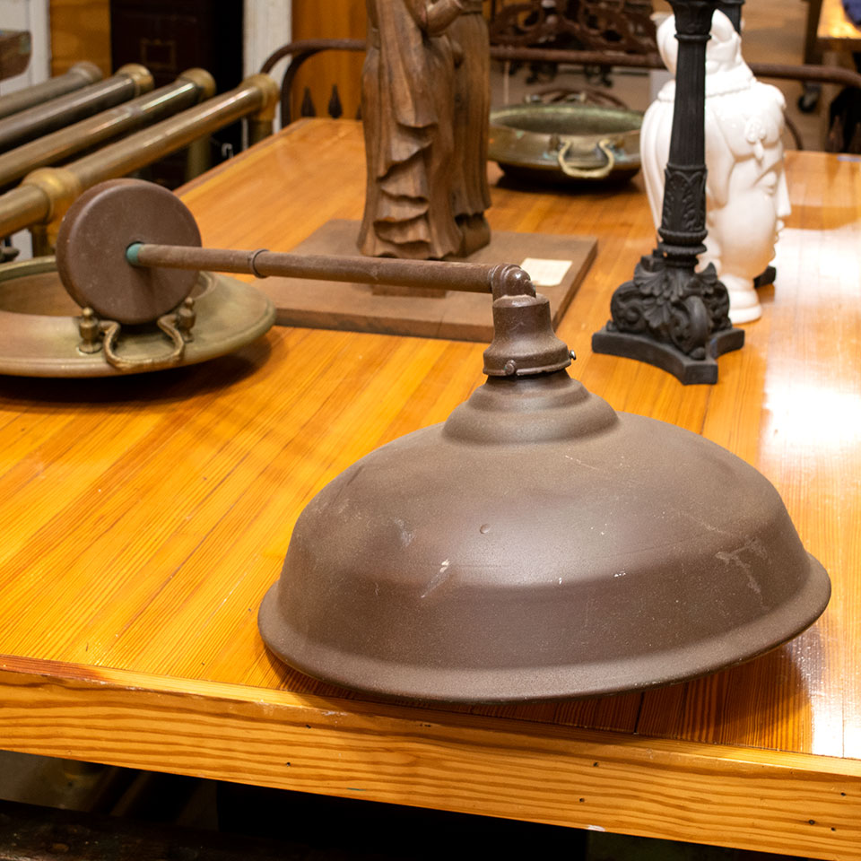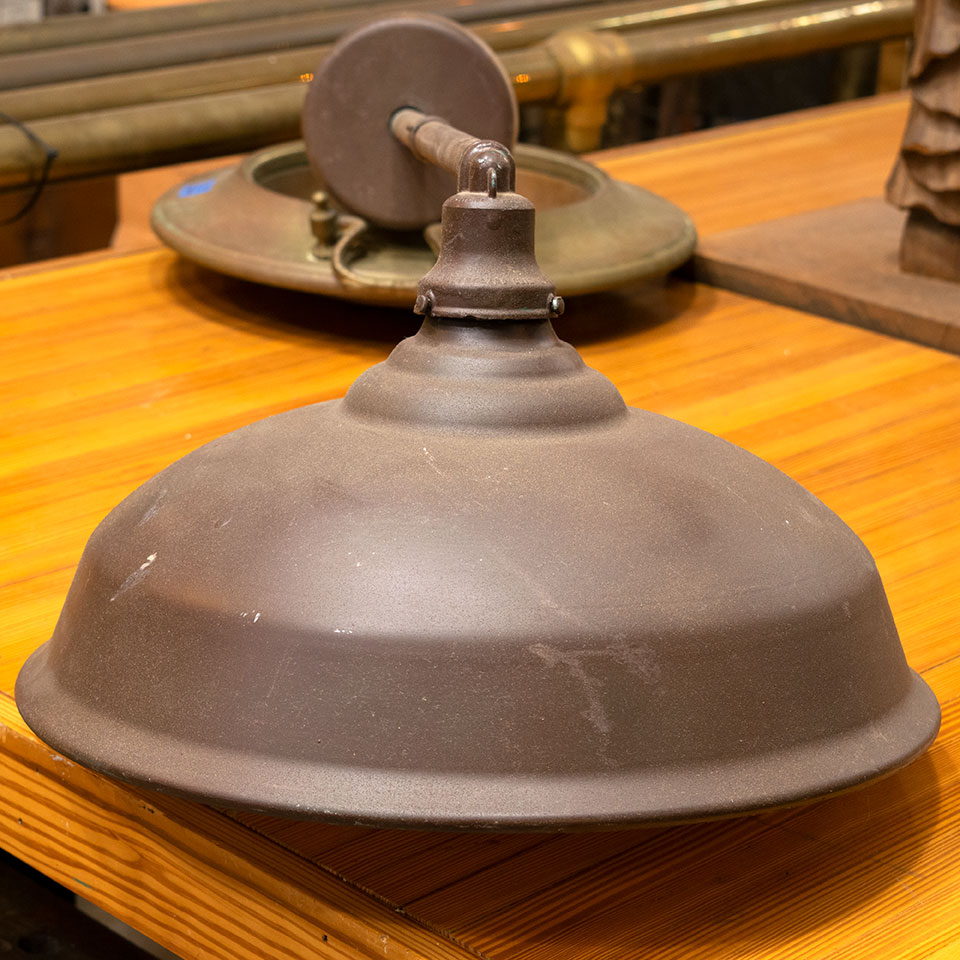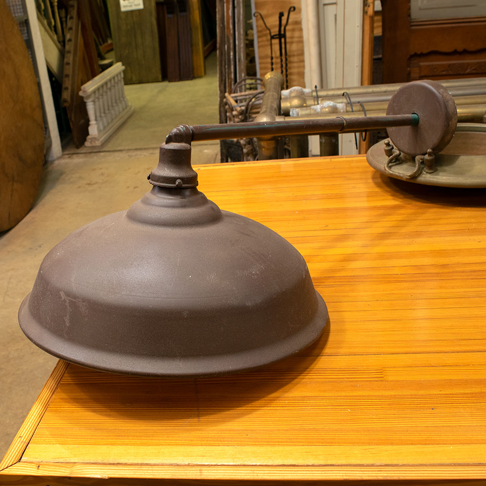 Architectural salvage contemporary industrial wall mount light fixture measuring approximately 16 1/2" wide x 10 1/2" tall x 33" front to back. Due to the nature of architectural salvage, color and condition may very. With any salvaged lighting, it's recommended that a licensed electrician inspect the fixture and wiring prior to installation.