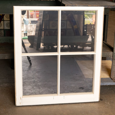 Vintage antique architectural salvage divided lite wood window sash measuring approximately 28 3/8" wide x 32" tall x 1 3/4" thick. Sold individually. Priced at $45/each. Due to the nature of architectural salvage, color and condition may vary.