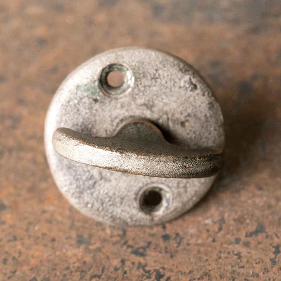 Antique architectural salvage deadbolt mortise lock set with a thumb turn and strike plate. The mortise lock faceplate measures 3/4" x 2 7/8" and the case measures 1/2" x 1 1/2" x 2 5/8" with a 1 7/8" backset. The thumb turn measures 1 /12" in diameter and 1 7/8" front to back (including spindle).