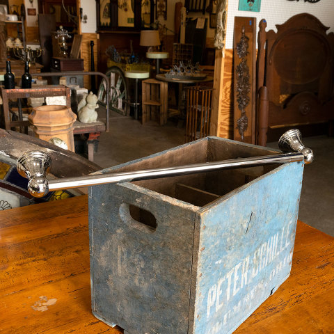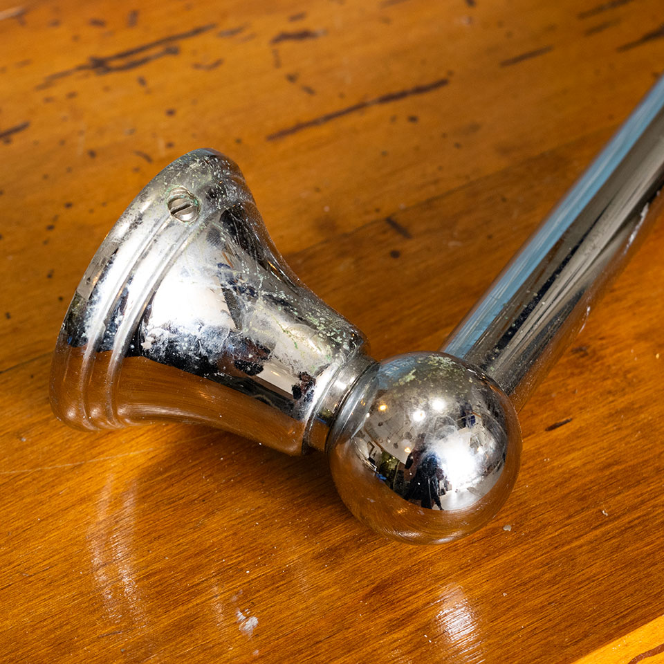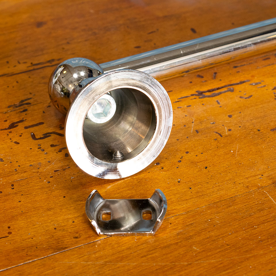 Salvaged wall mount chrome towel bar bathroom accessory hardware measuring approximately 23 1/2" wide x 2 3/8" tall with a 3 1/4" projection. Mounting brackets and set screws included.