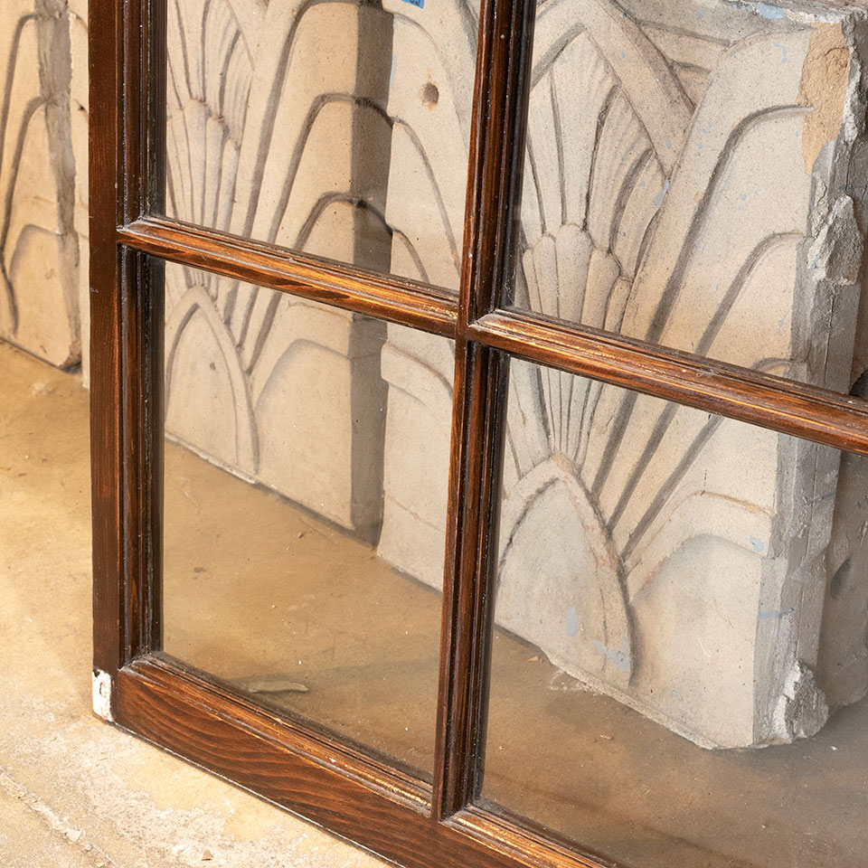 Vintage antique architectural salvage divided lite wood office transom window measuring approximately 36 3/4" wide x 28" tall x 1 3/4" thick. This window was reclaimed from Grandview Heights High School prior to interior renovations. See photos to evaluate condition.