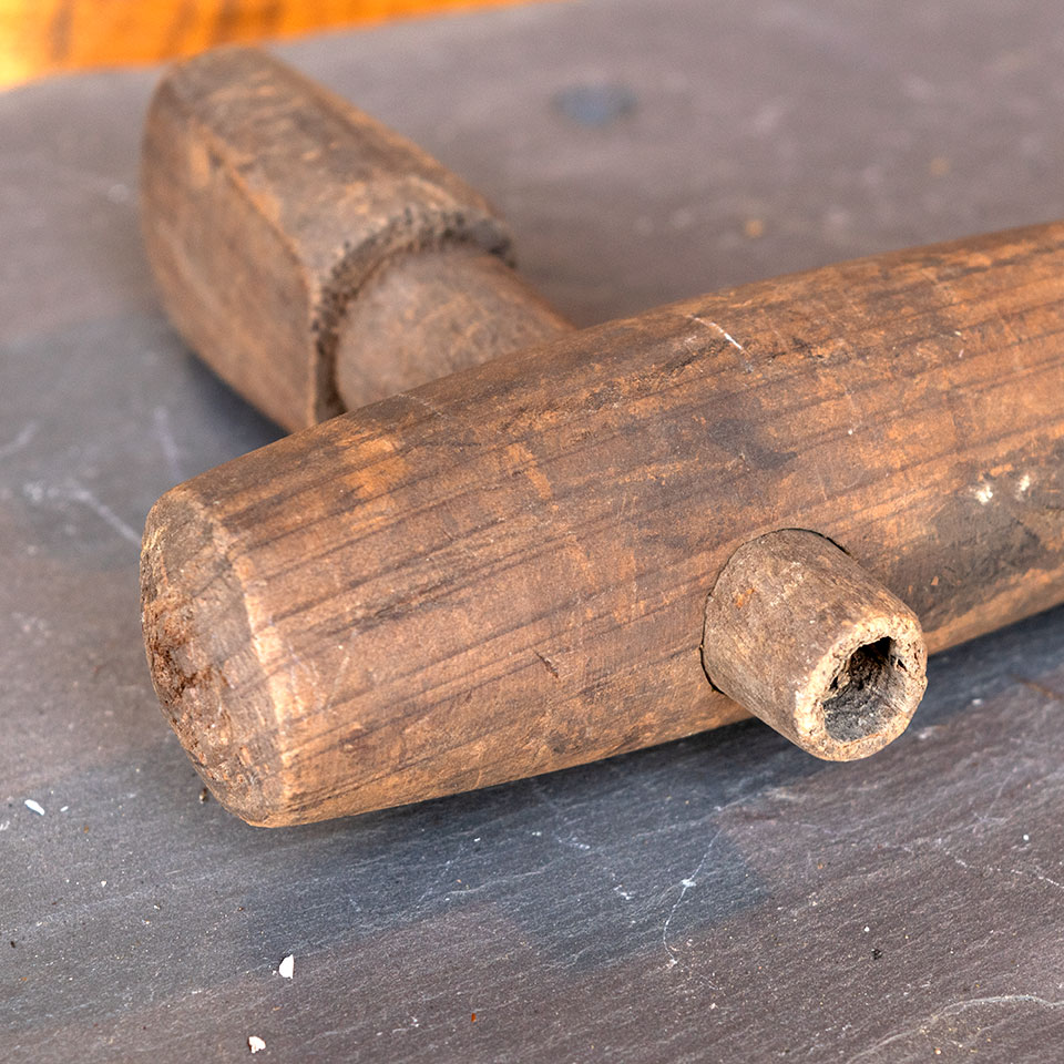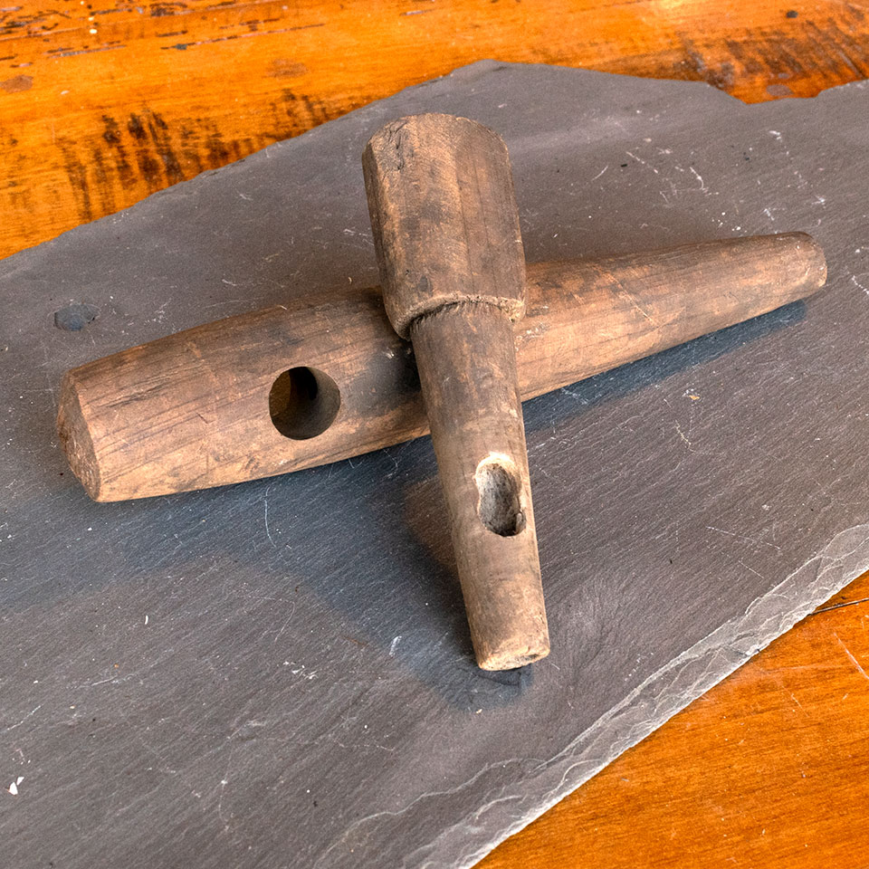 Large vintage antique wood spirits barrel bung tap keg spigot measuring approximately 1 3/4" x 8 3/4" x 5 3/8" overall.