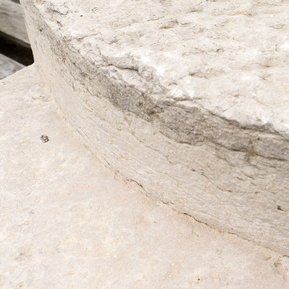 Hard to find antique architectural salvage limestone carriage steps from a historic Columbus, Ohio neighborhood measuring approximately 25 1/2" long x 14" tall x 21 1/2" wide.