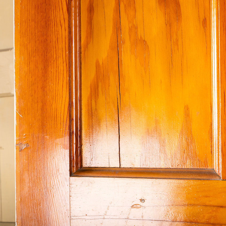 Antique architectural salvage 6 panel pine interior door measuring approx. 27 9/16" wide x 78 7/8" tall x 1 3/4" thick. This door is natural on one side and painted on the other. See photos to evaluate condition.