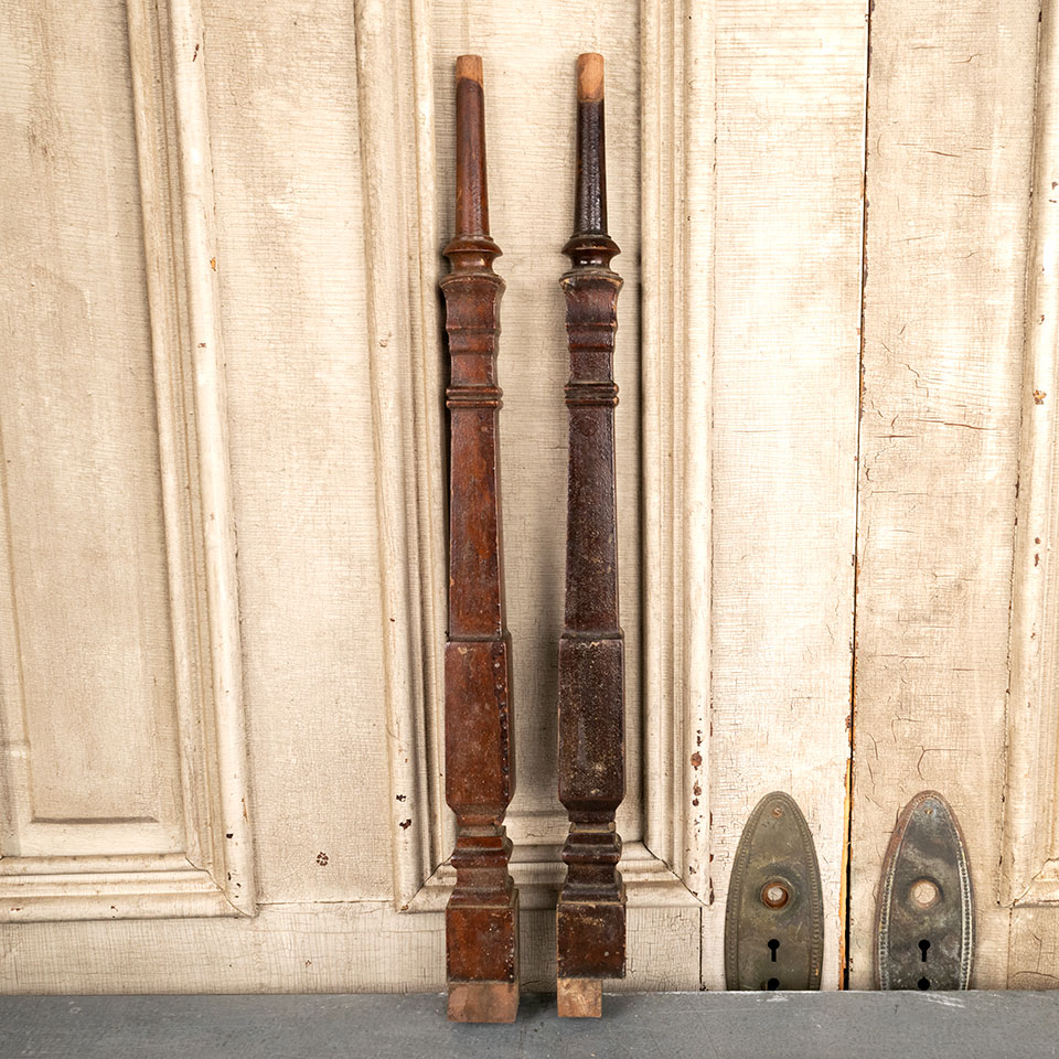 Antique architectural salvage walnut solid wood interior staircase baluster measuring approximately 2" square x 27 3/8" tall. Sold individually. Priced at $12/each. Due to the nature of architectural salvage condition may vary.