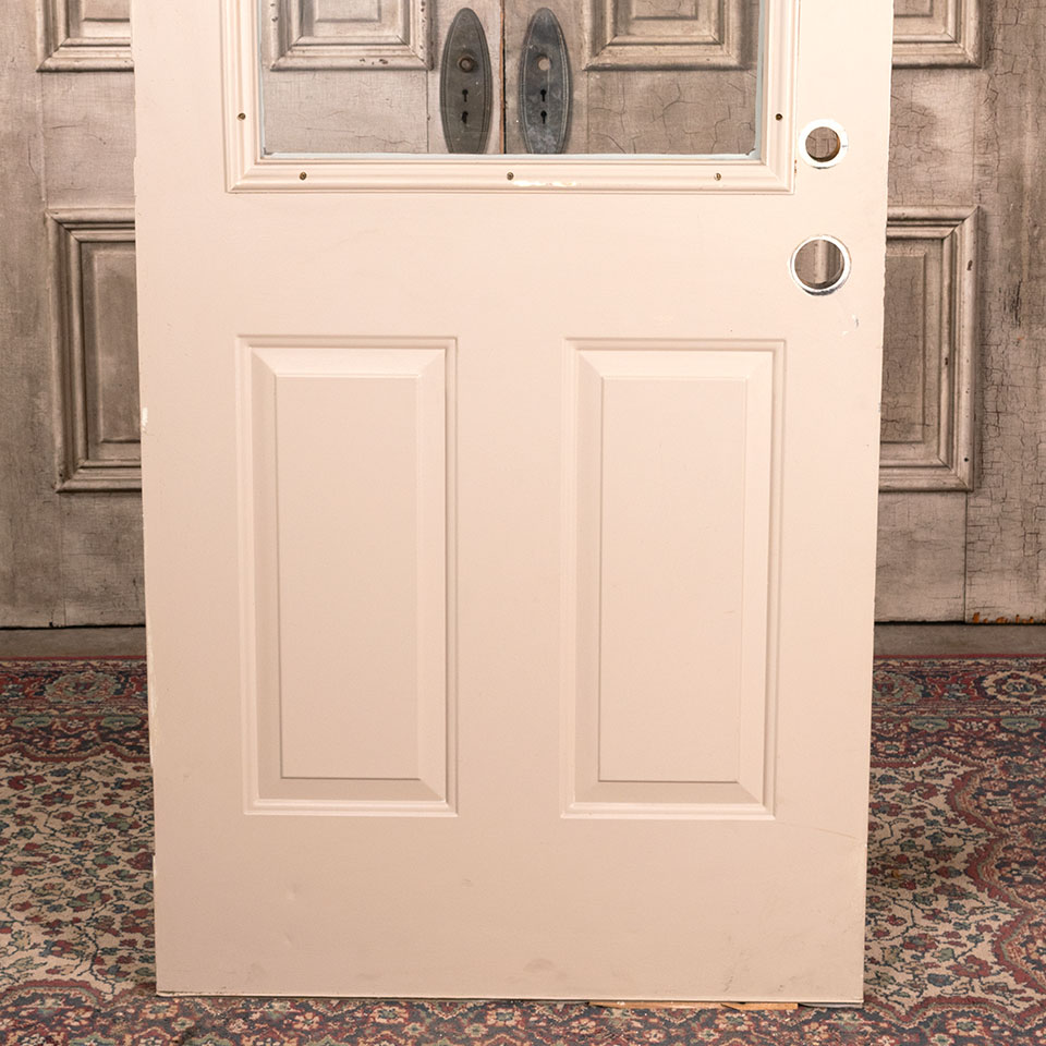 Architectural salvage contemporary metal clad half lite entry door measuring approximately 31 3/4" wide x 79 1/4" tall x 1 3/4" thick.